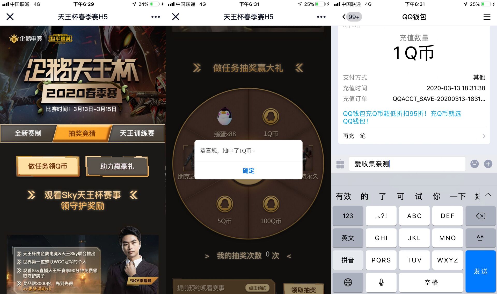 企鹅电竞点抽奖竞猜->下拉页面->做简单任务抽