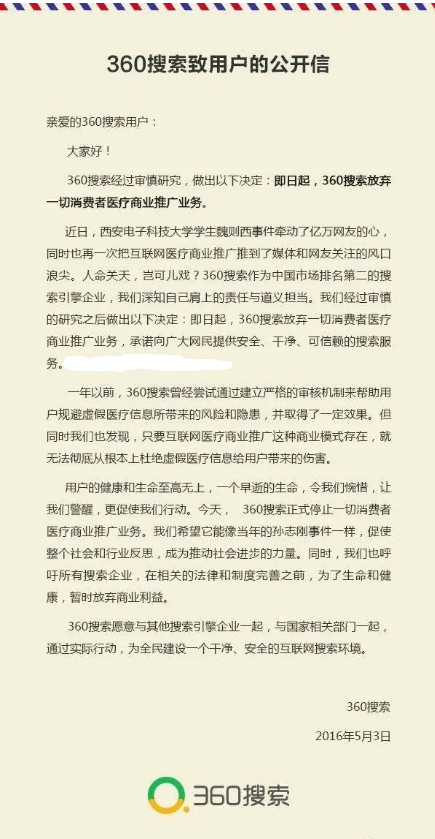 值得注意的是,早在 2016 年,在魏则西事件后,360 搜索就