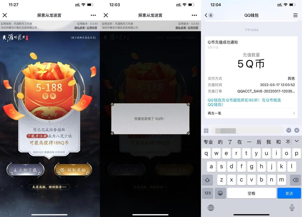 2、返回抽Q币或红包QQ打开是Q币,微信打开是红包,两者不冲突都可以领!