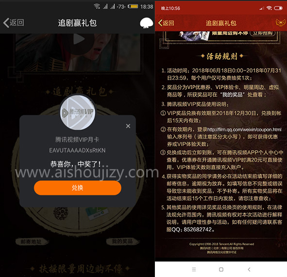 活动步骤: 1.手机QQ扫码打开→点我抽奖→几率抽中腾讯视频VIP月卡 PS:可以多试几个号,八月试了9个小号才中了一个并不是秒中的,看人品~