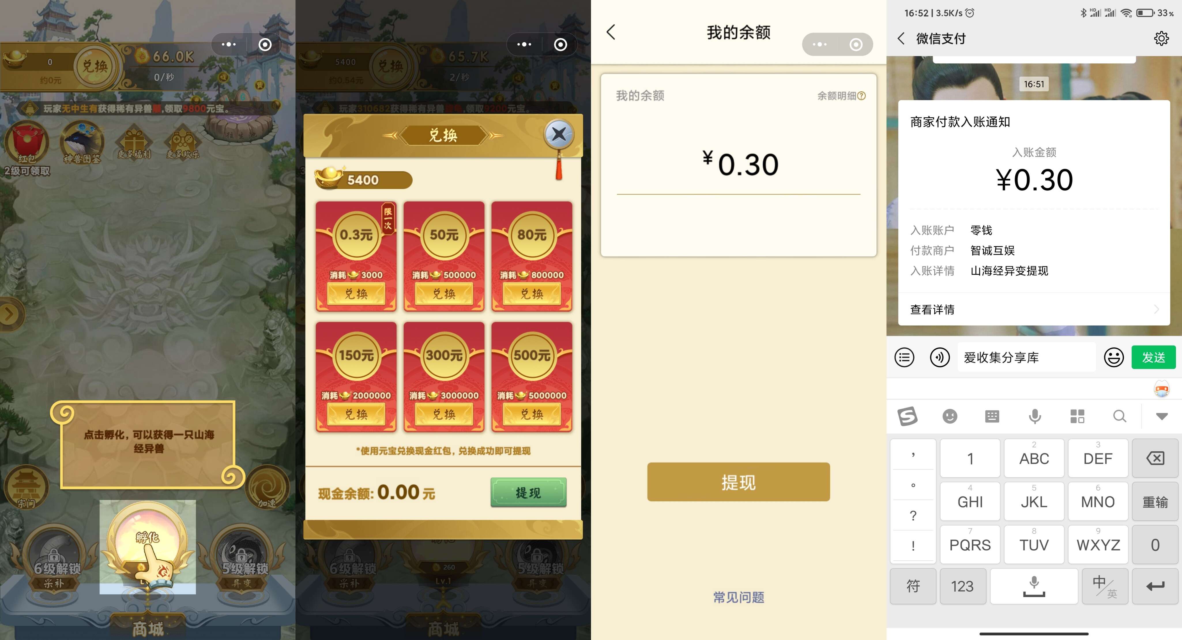 2、跟着指引走->获取元宝兑换0.30元微信红包