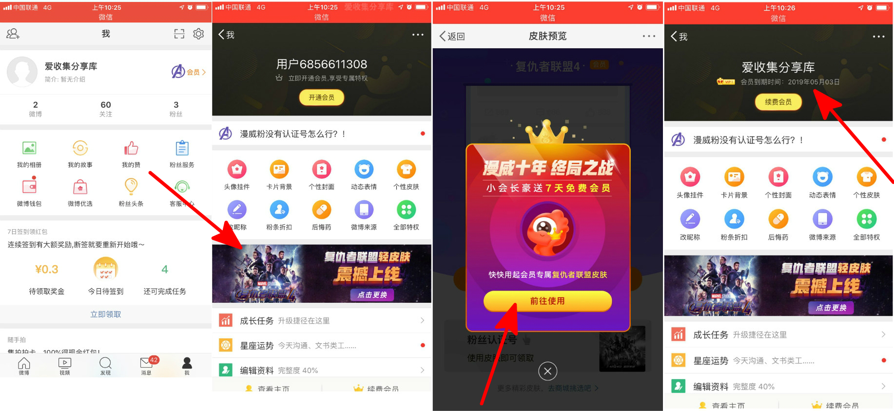 微博-我-右上角-会员-中间轮播图片-复仇者轻皮肤