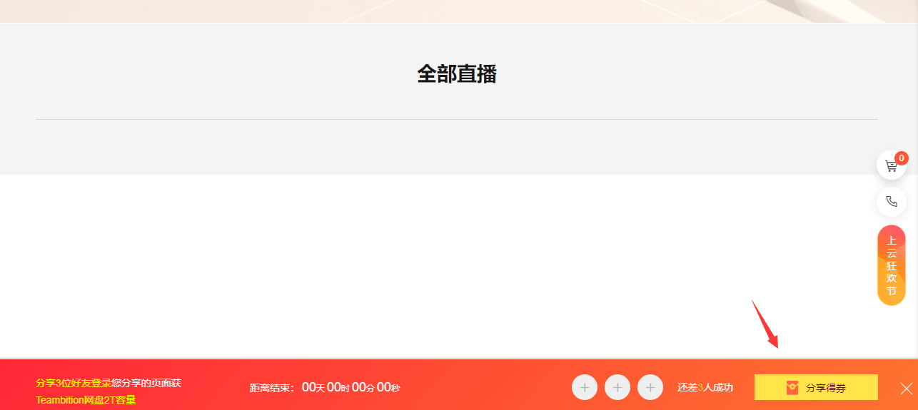 打开活动页面,点击分享得券,然后邀请3个好友打开页面“登录阿里云账号”