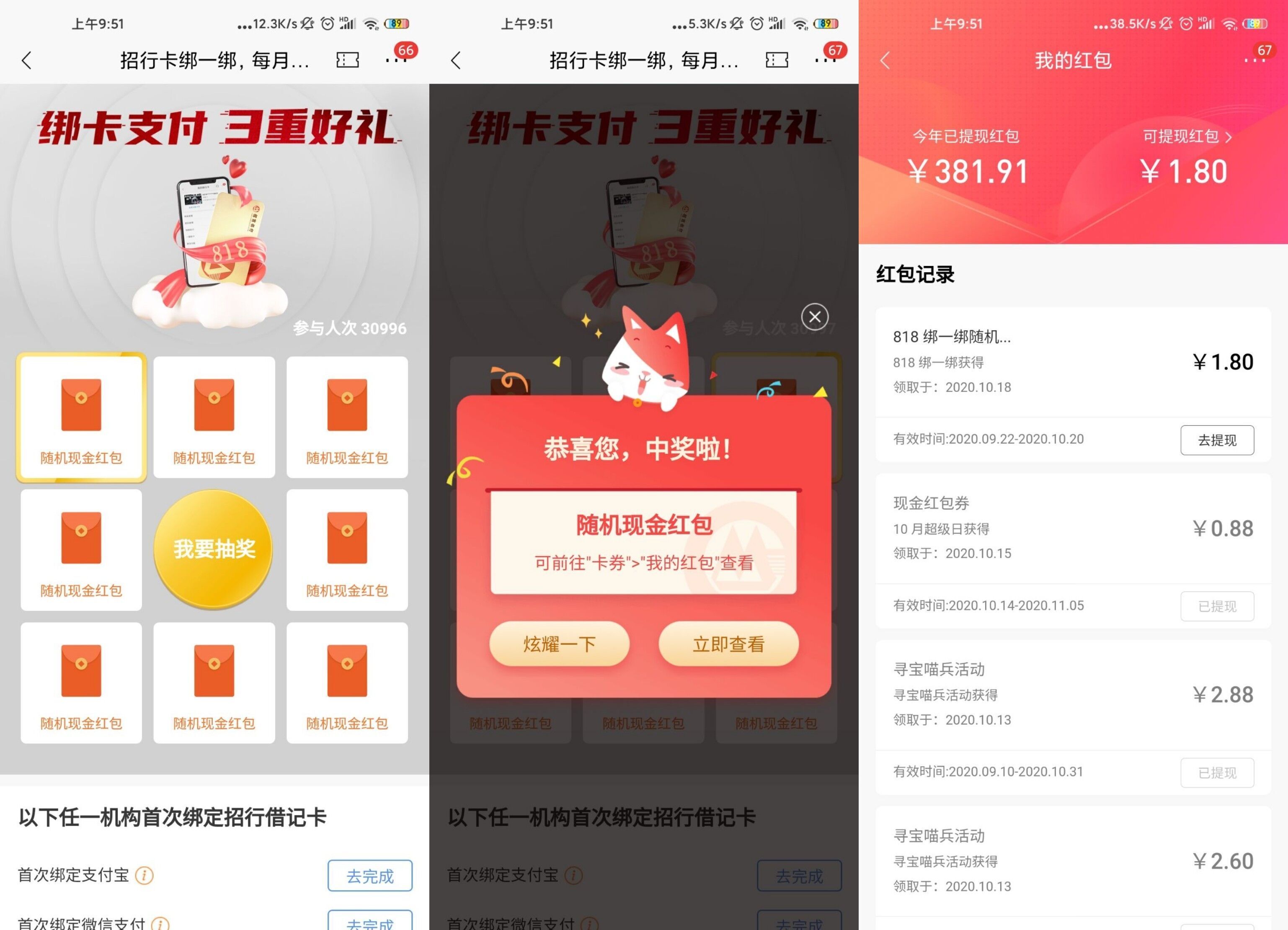 10月18日置顶新一期活动,限有招商银行卡的参加