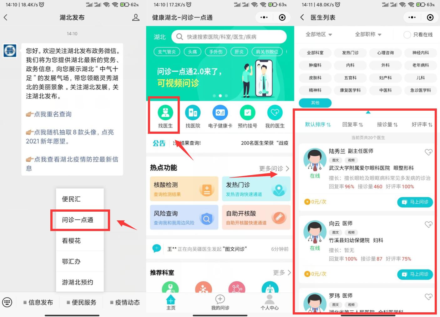 1、微信关注“湖北发布”->菜单栏中二->点击找医生