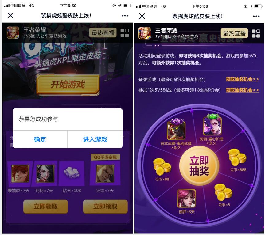 王者荣耀登录抽Q币4次机会,高几率中永久皮肤或Q币
