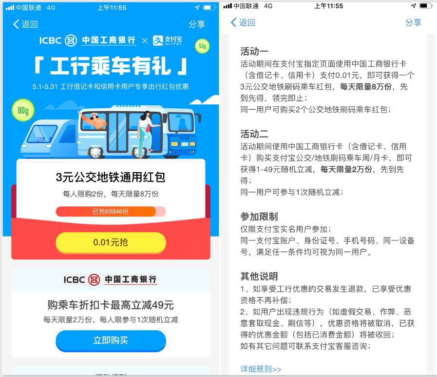 用工行借记卡、信用卡支付0.01元可获得