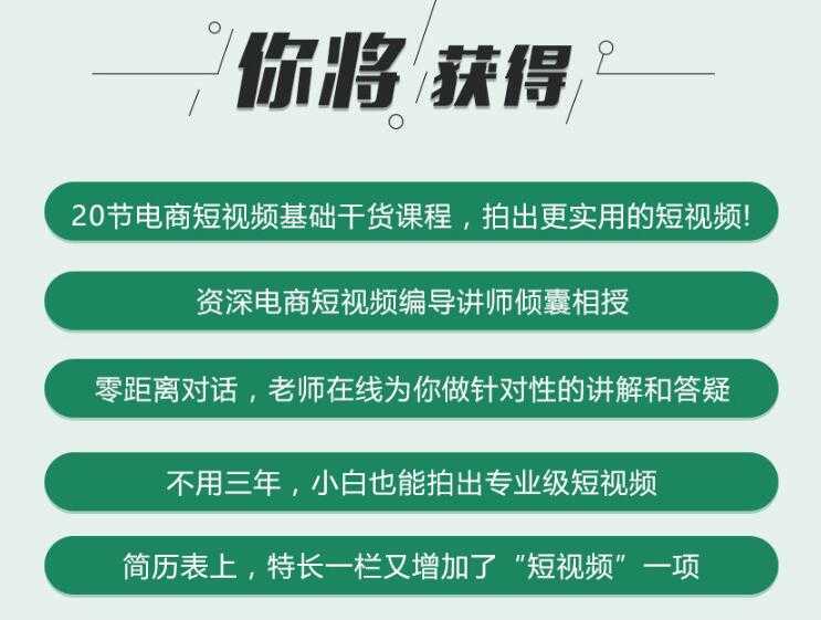 已经有很多人靠这些项目从白手起家,到现在有车有房。简单策划一条可以带货的短视频! 你还在自己一个人摸索短视频吗?一堂课让你成为真正的短视频导演,轻松获得短视频带货思维。 课程特色: 1、适合电商短视频小白入门 2、从基础理论到实干技巧 3、干货方法论,自上千条项目创作实践 4、通俗易懂,落地性强,学完即用 5、系统性的培养短视频策划思维‘’ 适合人群: 1、电商行业从业者,如美工/文案/运营等 2、想进入短视频行业的小白 3、想要转行从事电商短视频的人 下载地址:https://pan.baidu.com/s/1PgtYRE5cqg2dwcZNpqyYeA 提取码:raff |