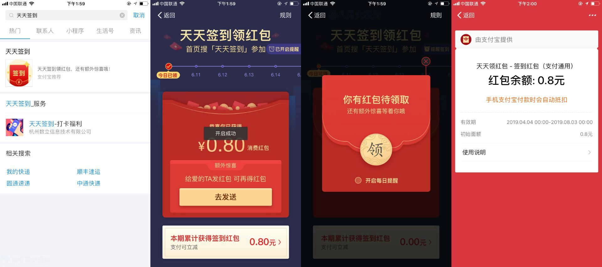 支付宝首页APP搜索:天天签到