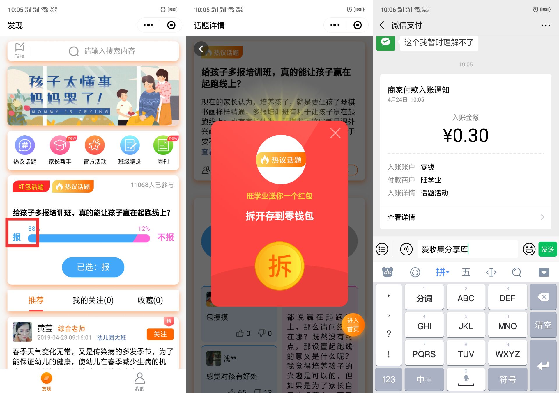 PS:如果提示没包了就会有新的话题,进去参与就有红包!