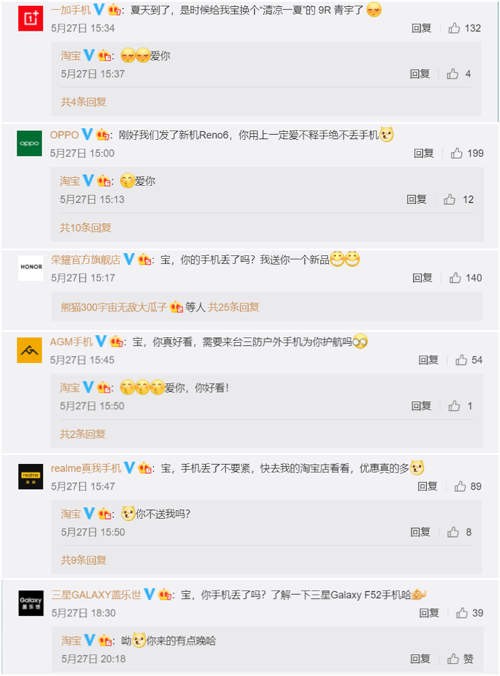 自淘宝发布官微改名后,有网友调侃:淘宝的手机丢了。然后引得一大批手机厂商要给淘宝送手机........