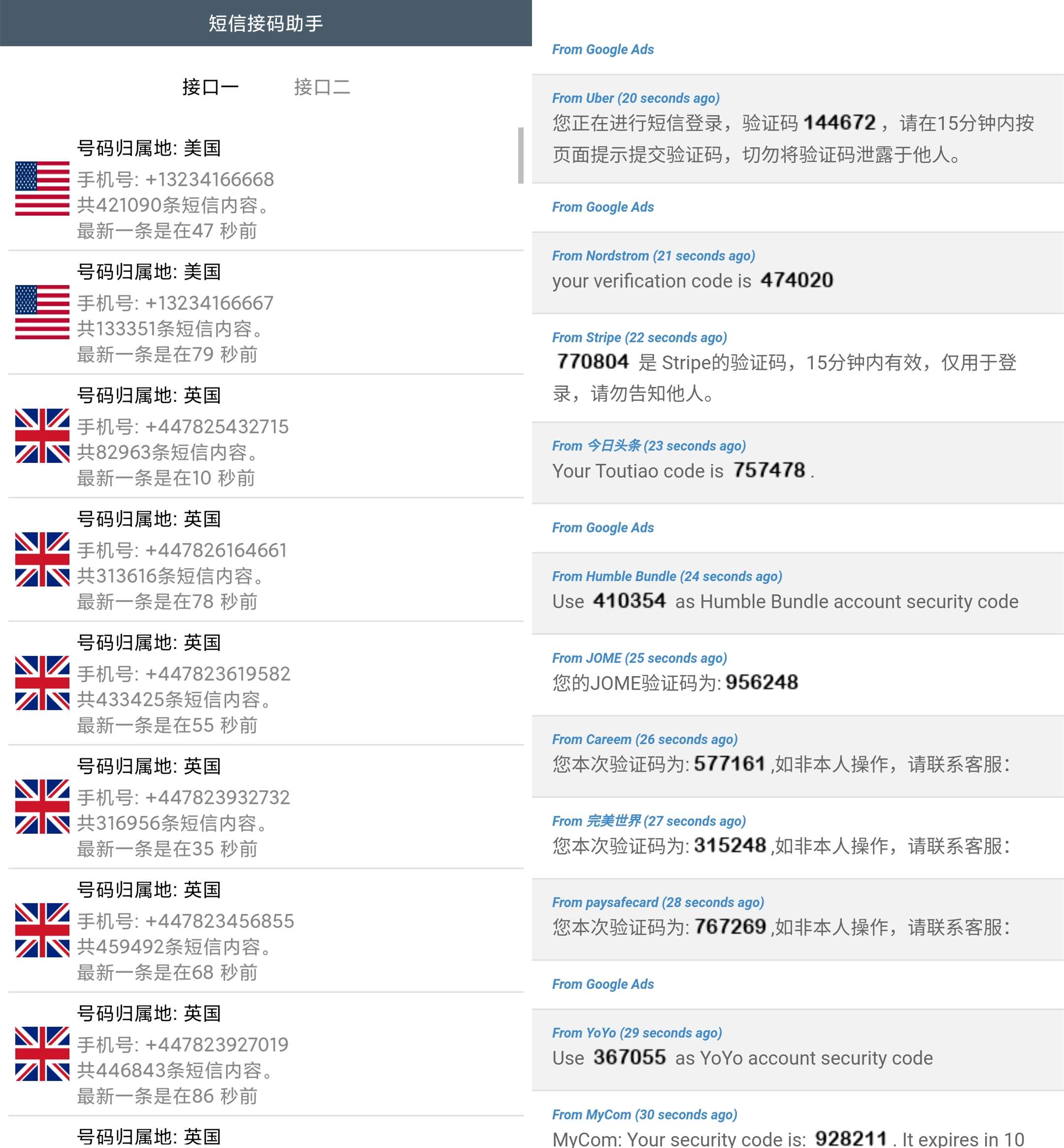 软件仅供个人参考使用,严禁商业或非法用途! 收码时不想用自己手机号码?使用国外App没办法注册? 短信接码助手帮你解决,内置多个国内外手机号码,在线时刻接码。 下载地址:https://pan.baidu.com/s/1PELNBJq0O524CVDa3pVMtw 提取码:zkyx |