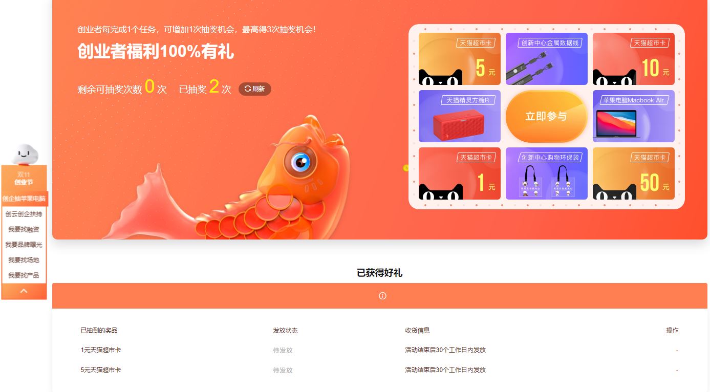 2、可以得一次机会->中了按照填写地址即可->30天内发奖