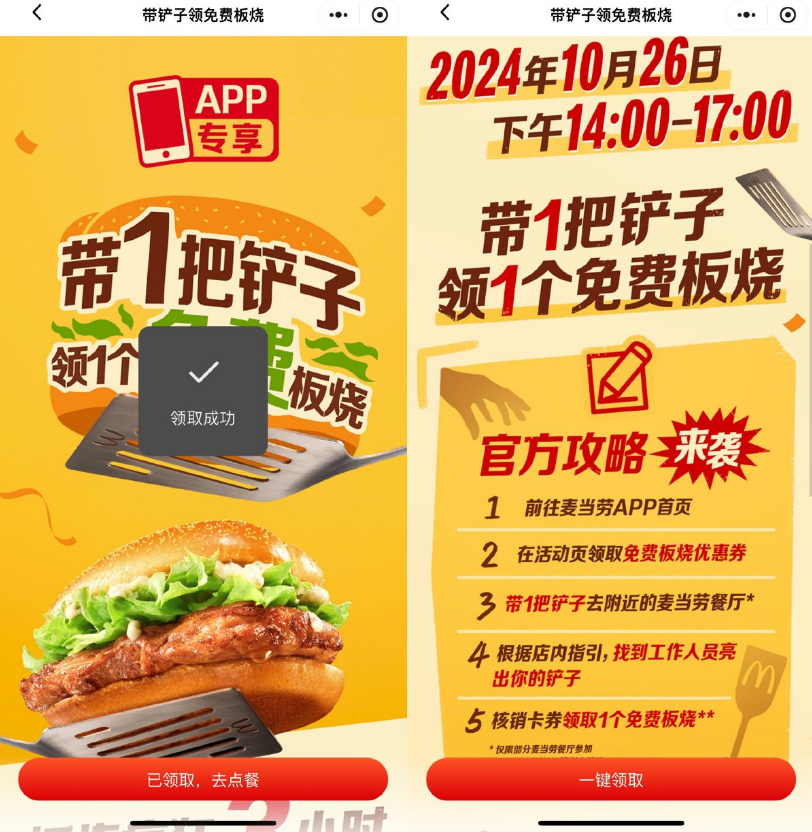 带着铲子到店即可核销免费领板烧堡