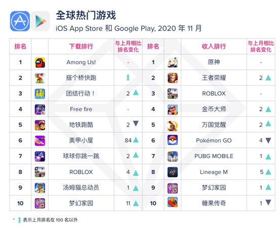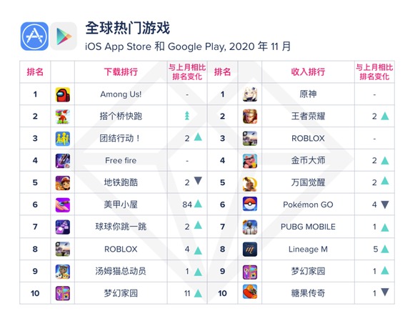 Google Play双榜年度最佳游戏的《原神》,稳坐收入排行榜第一。 在全球热门应用方面,Disney+ 在被 App Store 以及 Google Play 连续在更多的国家地区推荐后, 空降全球下载量榜单第 7 名,收入也表现优秀,继续维持在了收入榜第 4 名的位置,后续值得期待。 《爱奇艺视频》挤下 Pandora Music 重新回到收入榜单第 8 名。 据了解,腾讯游戏是腾讯品牌腾讯互动娱乐的电子游戏业务部,负责电子游戏开发、发行、运营等业务。 腾讯游戏成立于2003年。腾讯旗下的游戏开发工作室分别有天美工作室群、光子工作室群、魔方工作室群、 北极光工作室群、Riot Games、波士顿工作室、NEXT Studios,