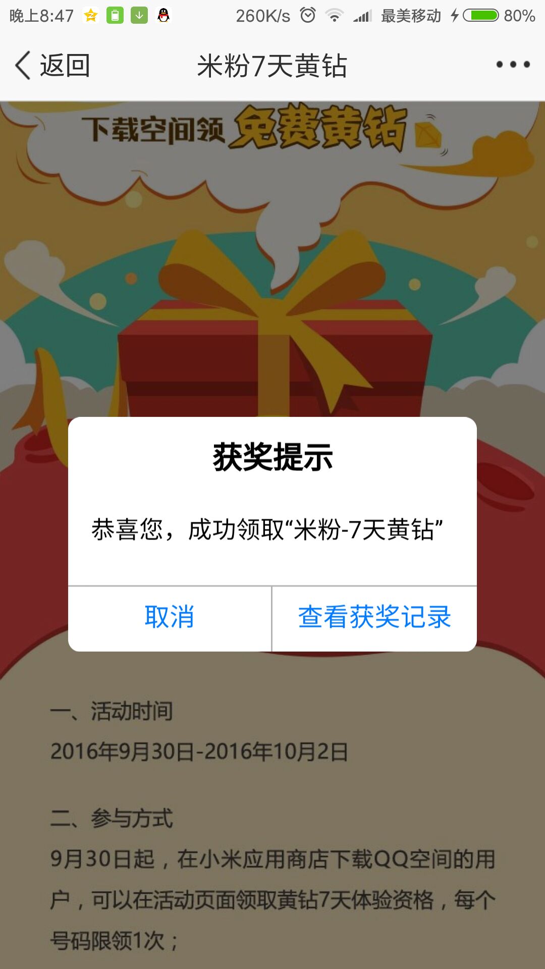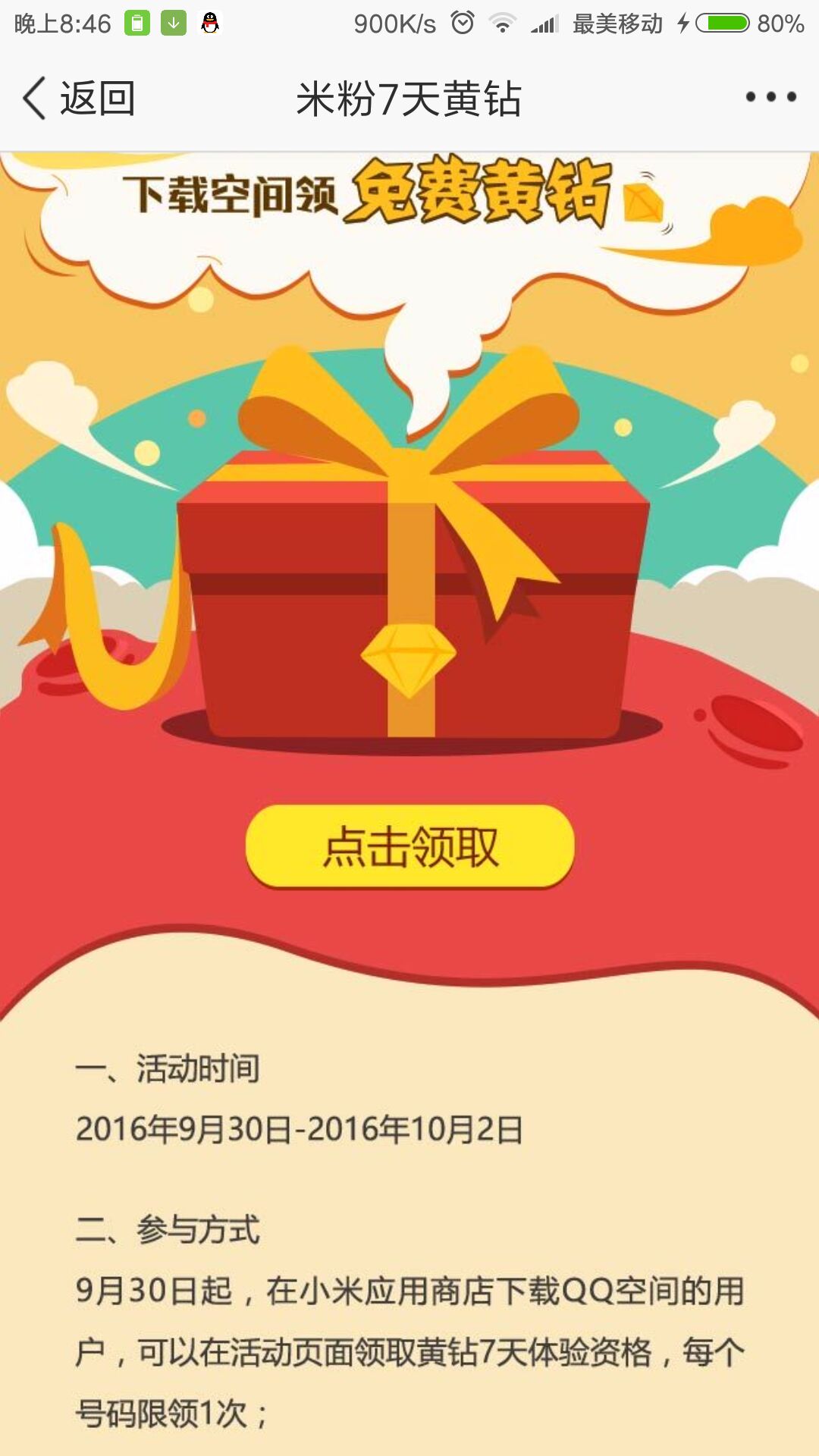 首页 > 羊毛线报 > 利用小米手机免费领7天QQ黄钻