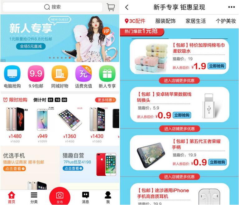 猎趣1元撸耳机/王者手柄等包邮