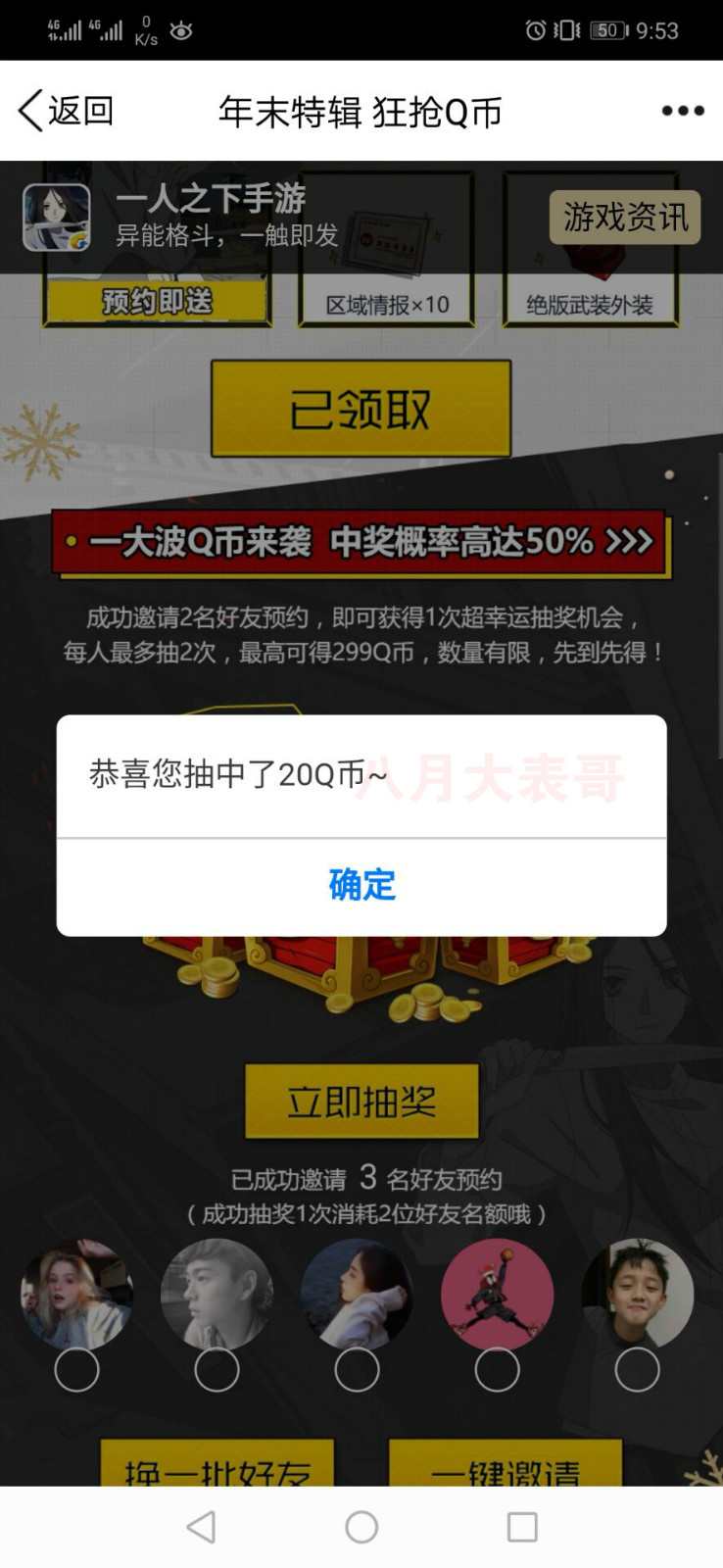 手Q扫码进入,点击立即预约,拉2个小号即可,然后抽奖