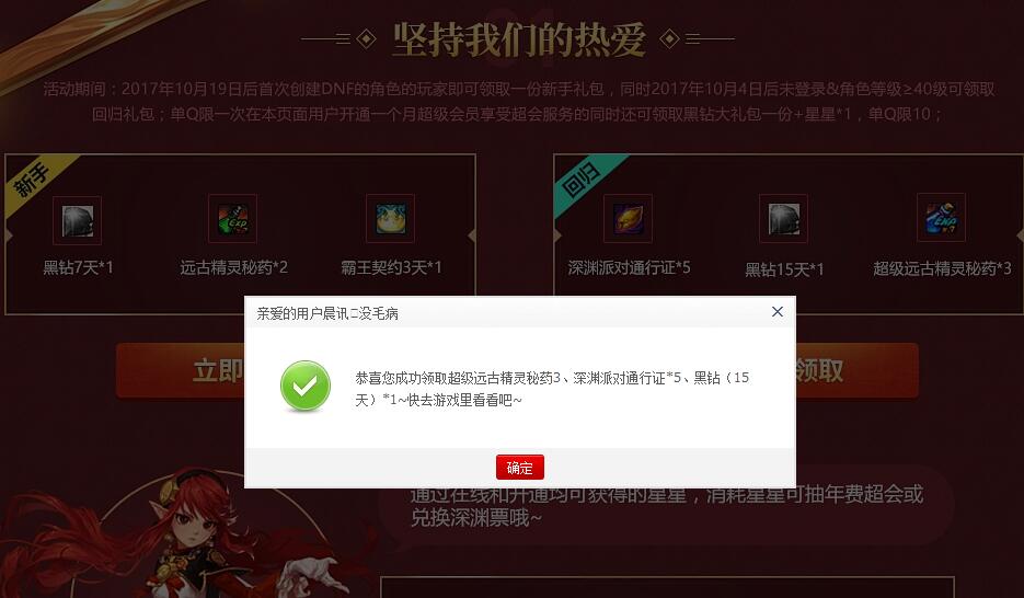 DNF最新免费领取44天黑钻活动