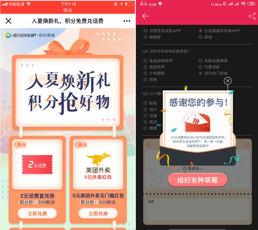 腾讯视频会员兑话费,300积分兑2元话费秒到,有积分的上~