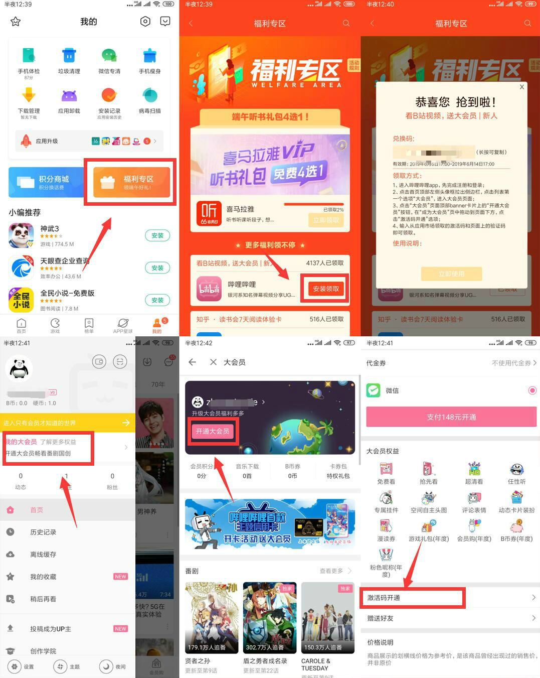打开小米应用市场APP->我的->福利专区->找到bilibili->点击安装