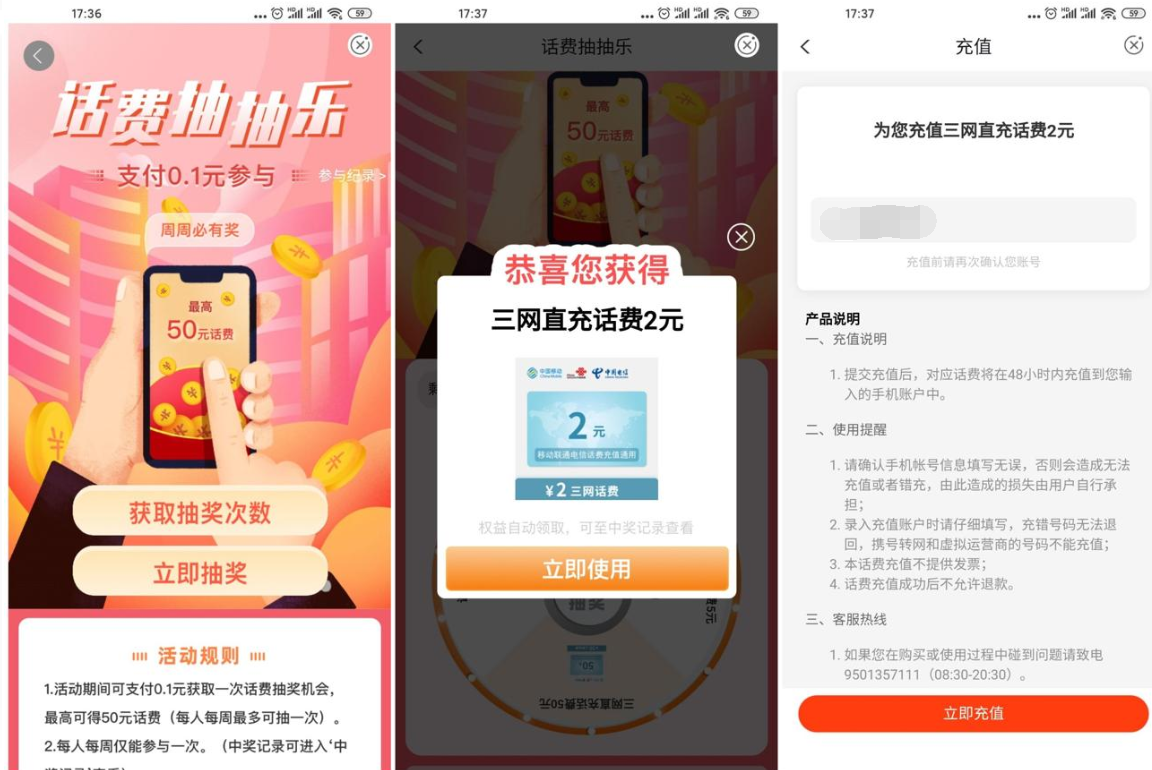 支付0.1元->然后立即抽奖->抽中后手动兑换秒到!