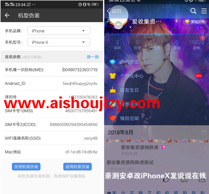 2.可以修改模拟任意机型,苹果在线,空间说说,装逼王必备~