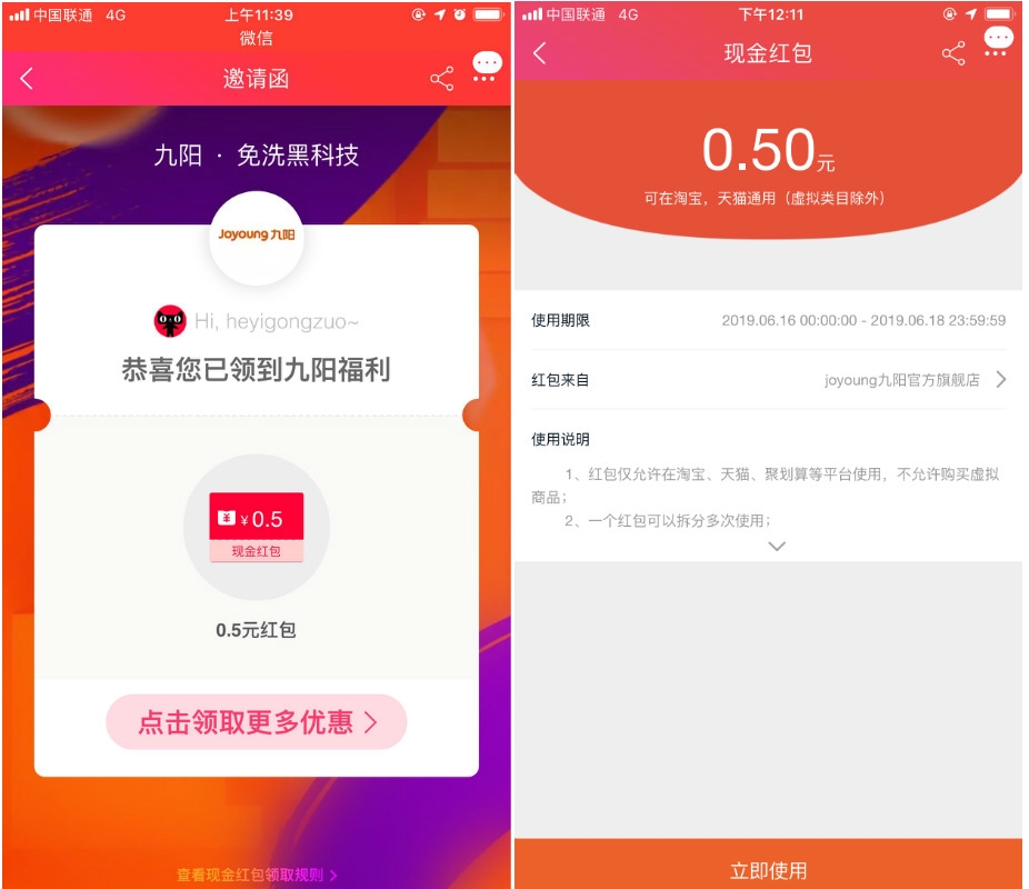 打开淘宝扫码进入,点击拆开,亲测0.50元购物红包