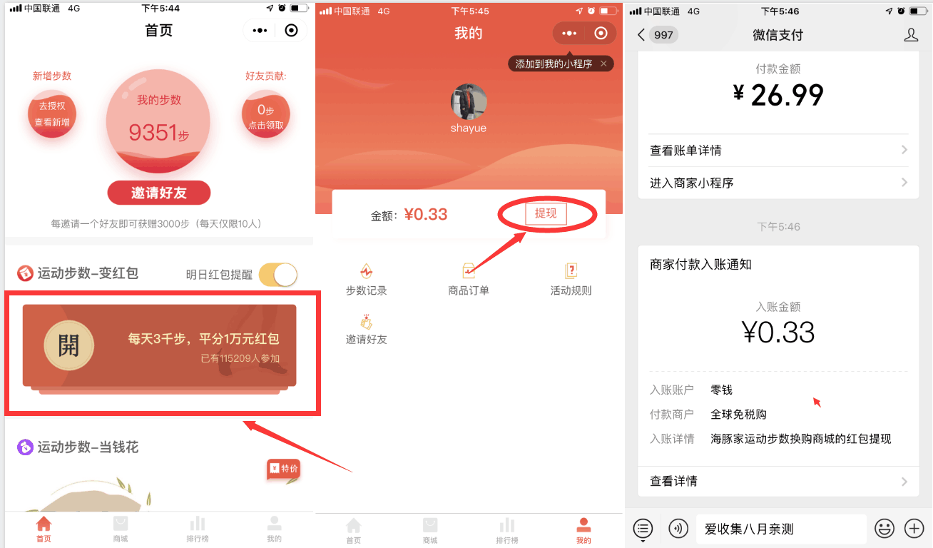 首页横幅->狂点瓜分->点我的 钱包->跟着提示验证提现->亲测秒到~