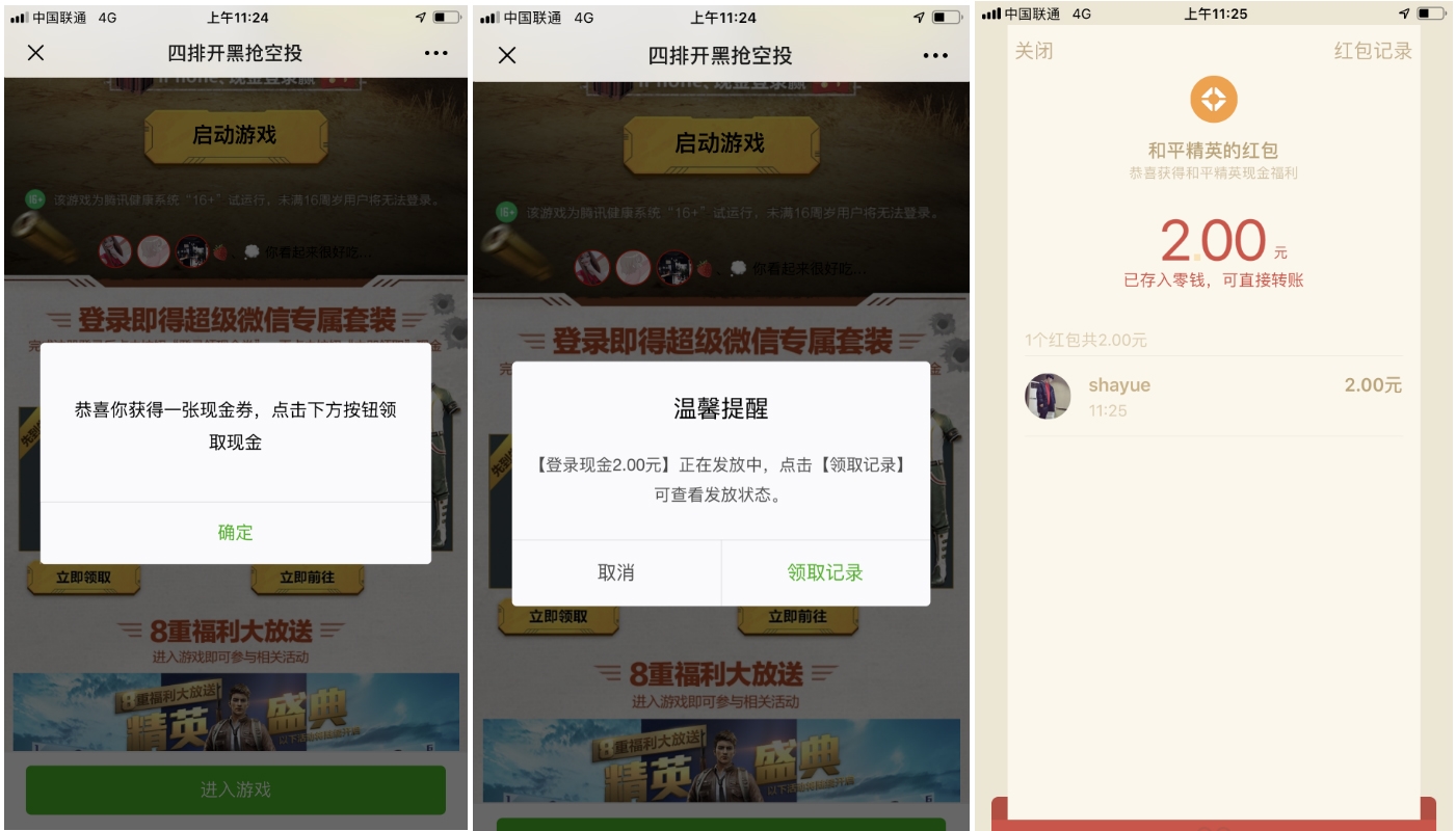 微信端是2元红包,QQ端是2Q币,组队满4人就能领取~