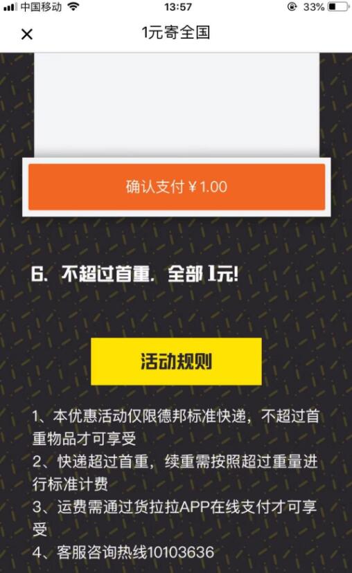 百度下载货拉拉,最新活动1元寄快递,限德邦快递,首重1KG/1元,续重2元/1KG
