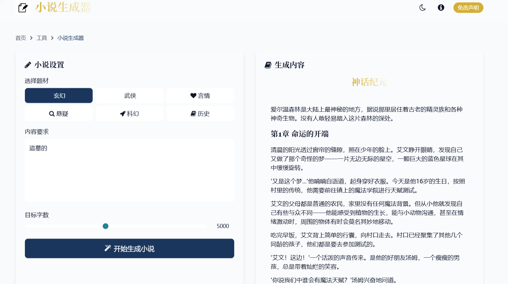 这款源码是一套高颜值、响应式的 AI 小说生成器静态网页模板,基于 Tailwind CSS v3 + Font Awesome 构建,适配移动端 / PC 端,无需后端即可部署,适合作为小说创作工具类网站的前端展示页,核心亮点和使用说明如下: 📌 核心特性1. 视觉设计(SEO + 美观双优)
