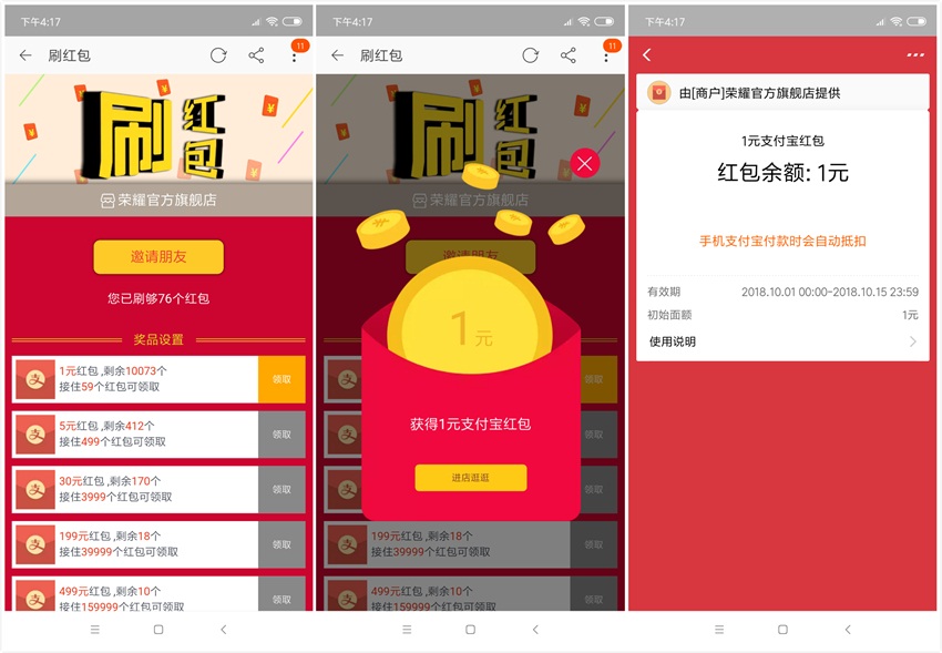 打开淘宝扫码进入,参与活动刷10个,就可以获得1元红包,可以套现~