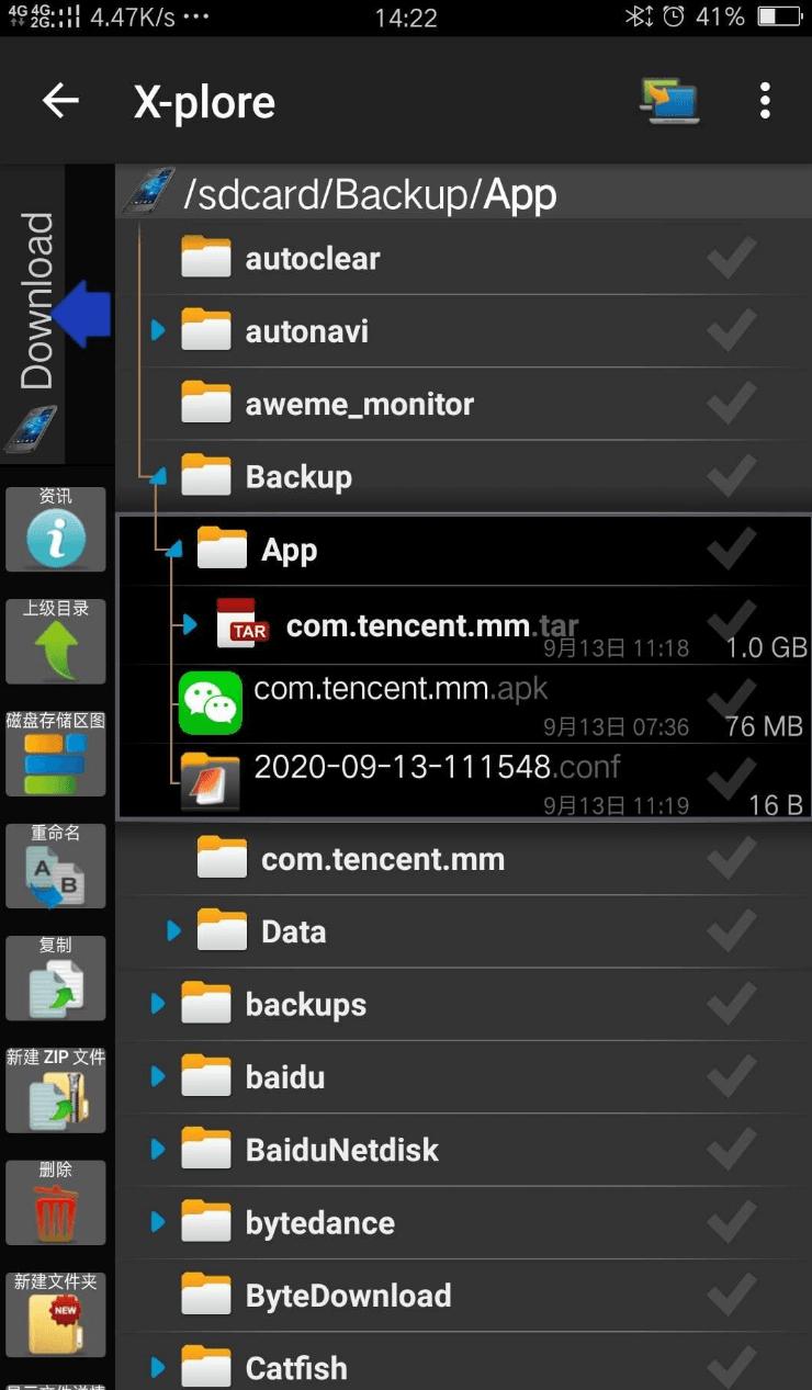 2,备份文件在backup文件夹里 3,把下载好的微信软件复制到这个文件夹里替换掉原软件,