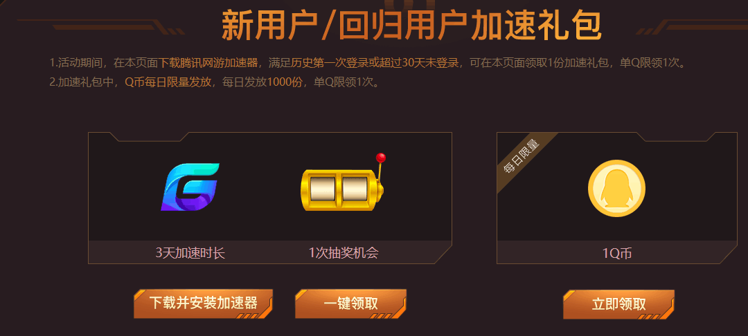 免费领3天腾讯网游加速器 看活动规则领取 玩吃鸡加速必备~