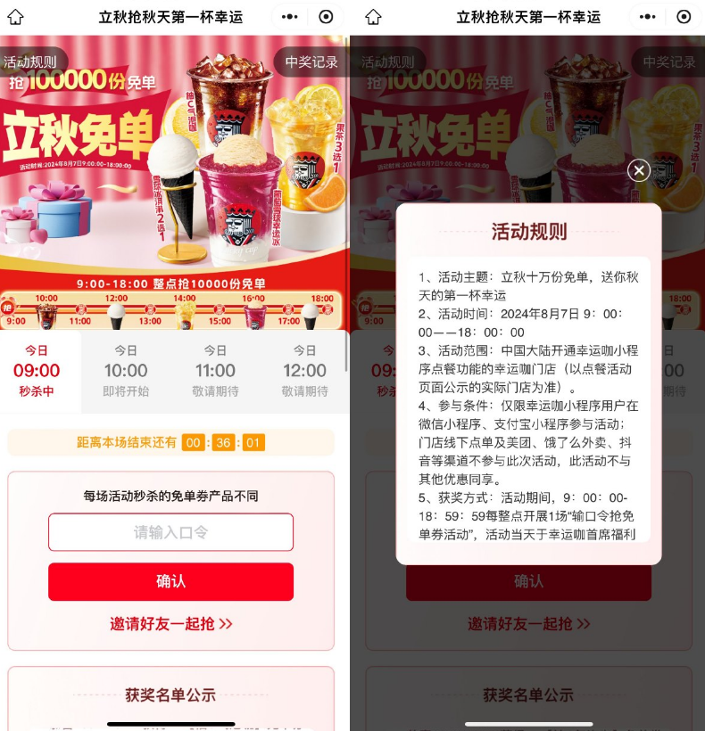 微信打开活动->今天每个整点输口令抢1万份免单券
