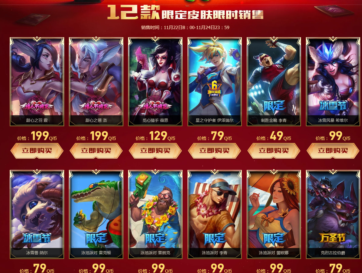另外还有12款限定皮肤限时上架销售了