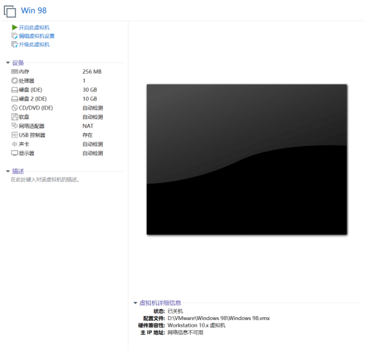 自制的VMware虚拟机win98,装了点能用的老软件,适合怀旧。 为方便使用,硬件兼容已经由16.x调整为VMware10.x, 请尽量用高版本VMware。压缩包为7Z,解压后约1.3G大小。 下载地址:https://pan.baidu.com/s/12-eJV2QdpsiNPPzxPL3Zkw 提取码:ppux |