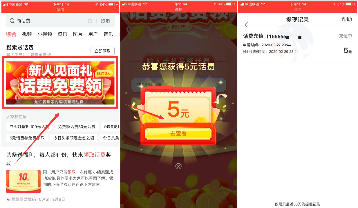 到今日头条app打开,弹窗输入手机号领取