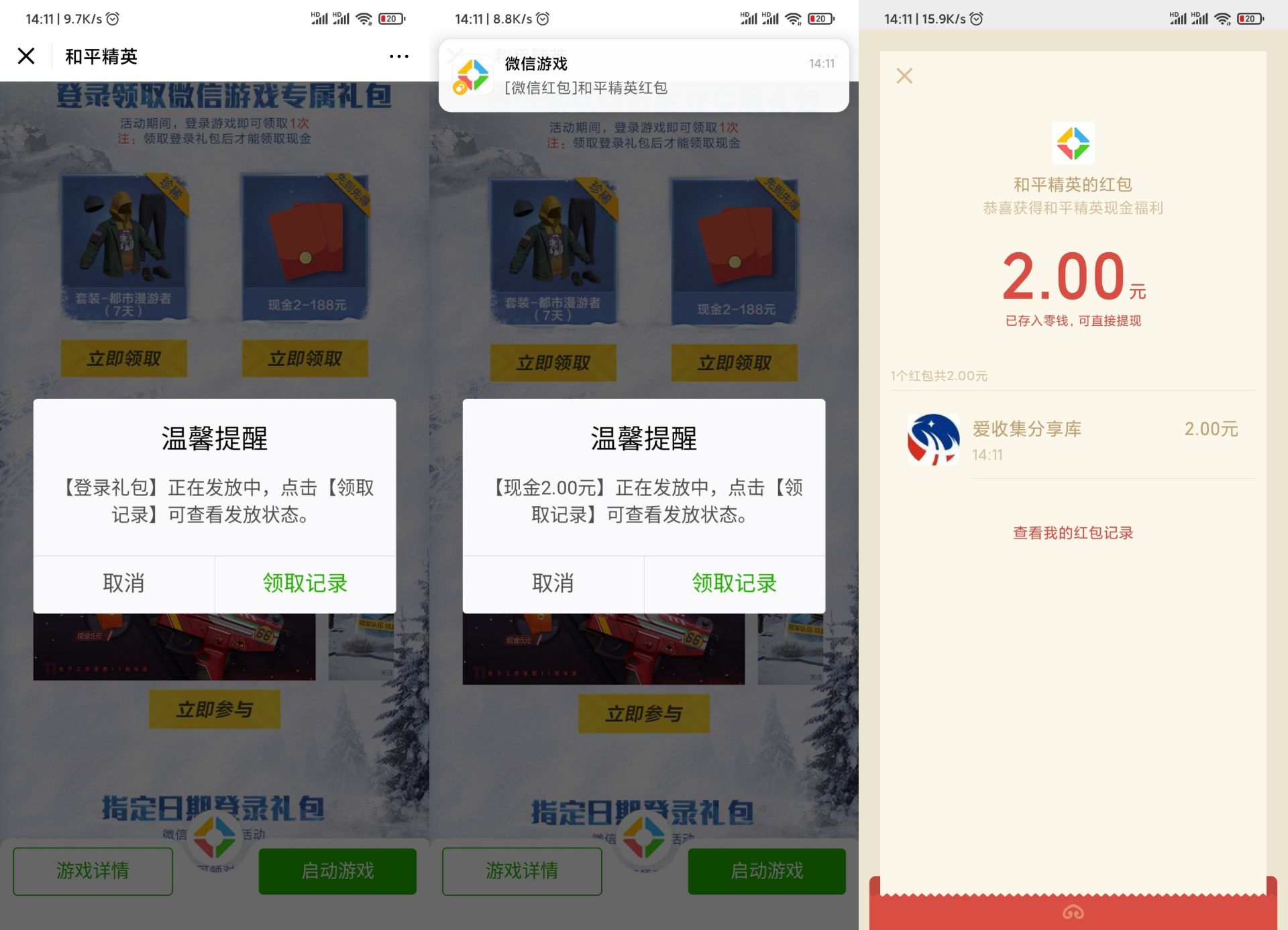 先点领装备再领红包,亲测中2元下拉还能抽奖