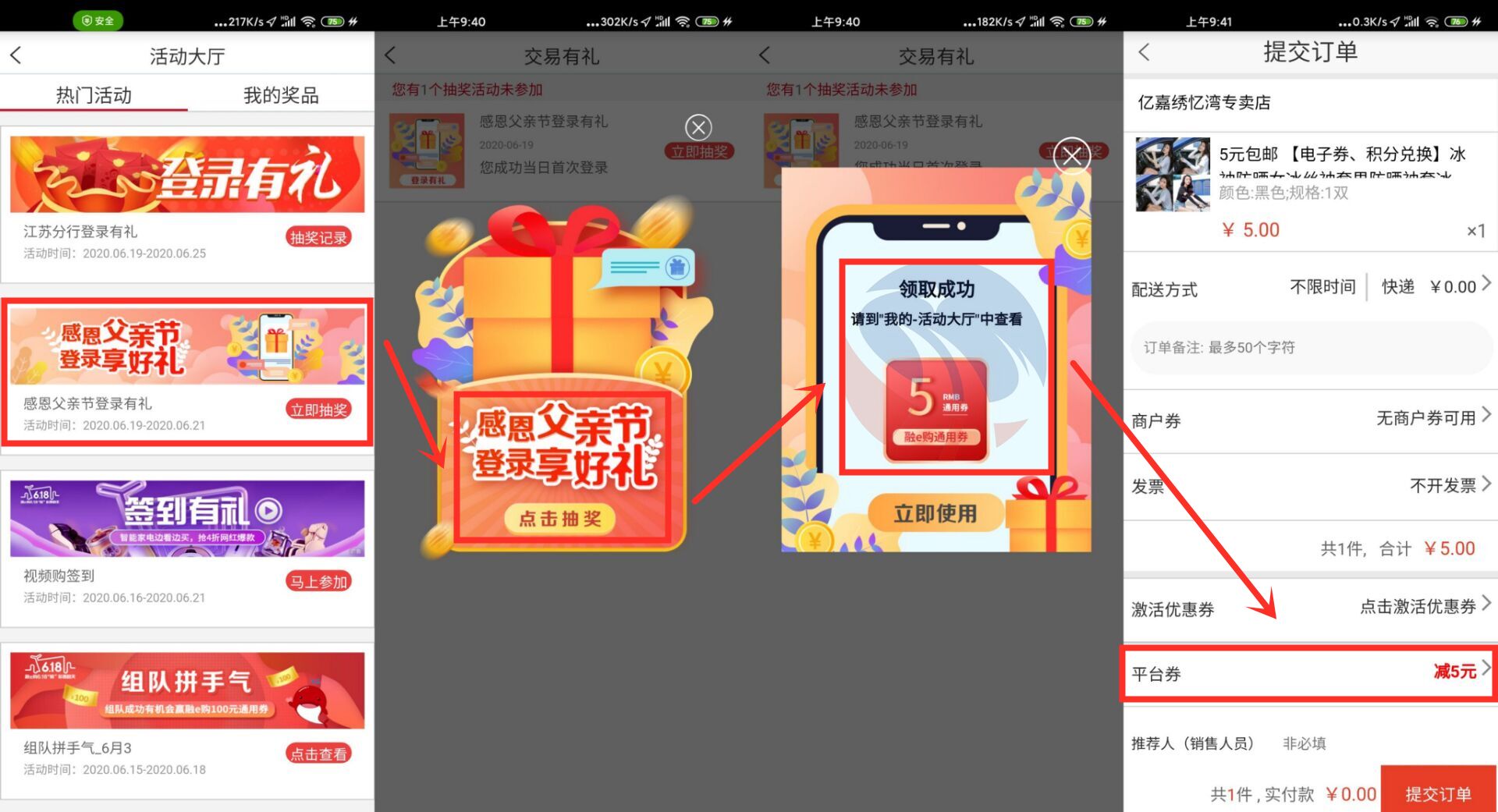 PS:活动大厅的缤纷六月礼和打卡赢好礼也可以抽通用券