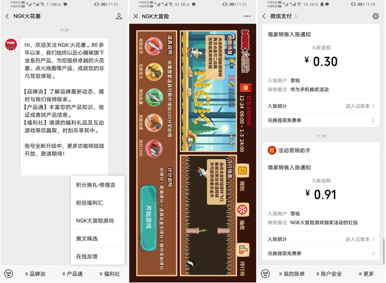 1、微信关注“NGK火花塞”->点右下角->大冒险游戏->玩游戏