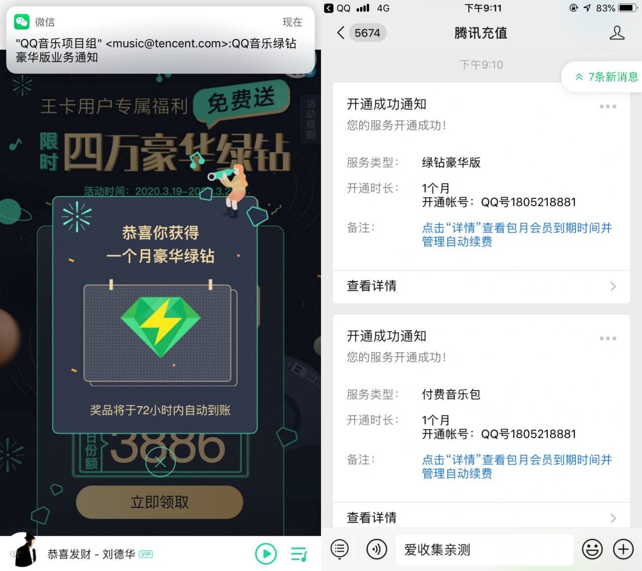 限腾讯王卡用户且本身没绿钻的领! 手机QQ扫码->跳转到QQ音乐参加->领取秒到是王卡提示不是的-> 去我的->右上三个横线->免流量服务->激活那里绑定下号码每天限量, 如果等会没了就明晚8点再去,很好领到的!活动截止到3月26日 |