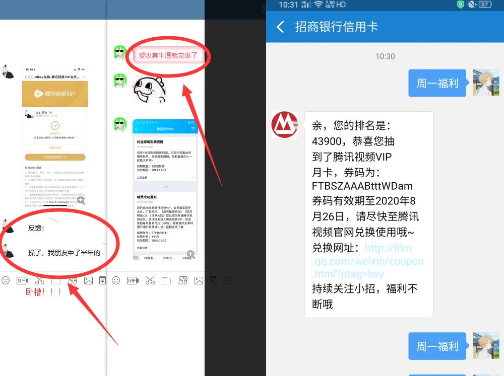 回复“周一福利”共3次机会->亲测腾讯视频月卡!