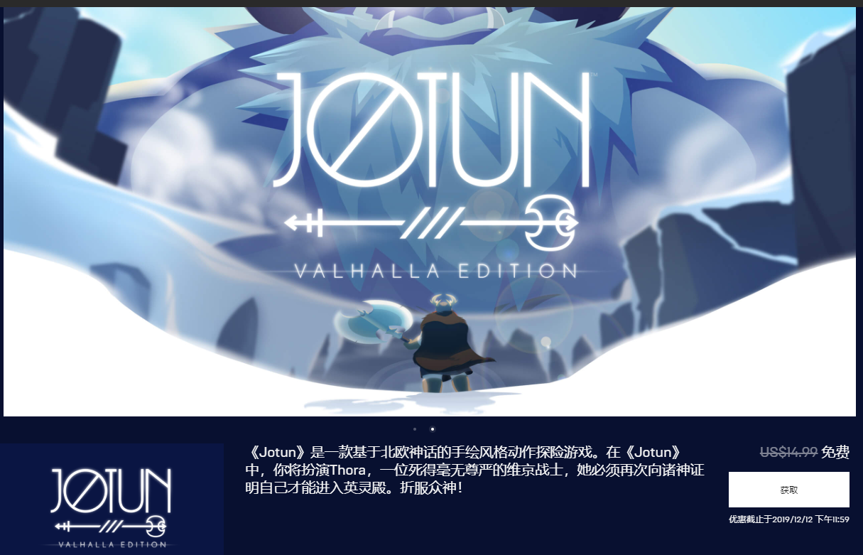 登陆Epic账户然后领取《Jotun: Valhalla Edition》游戏