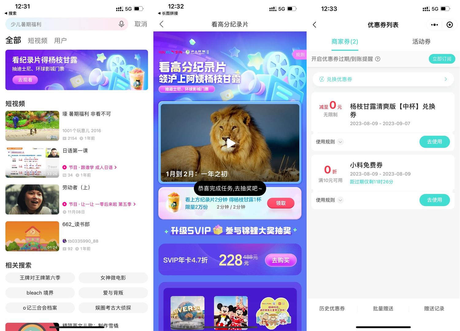 优酷APP搜索“少儿暑期福利”->点击视频直接拉进度条2分钟->