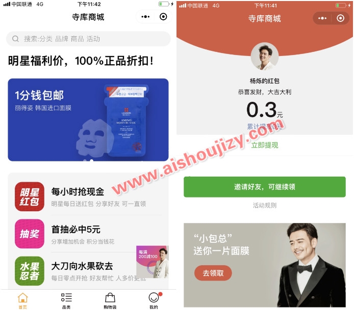 1、微信小程序:“寺库商城”,点击每小时抢现金