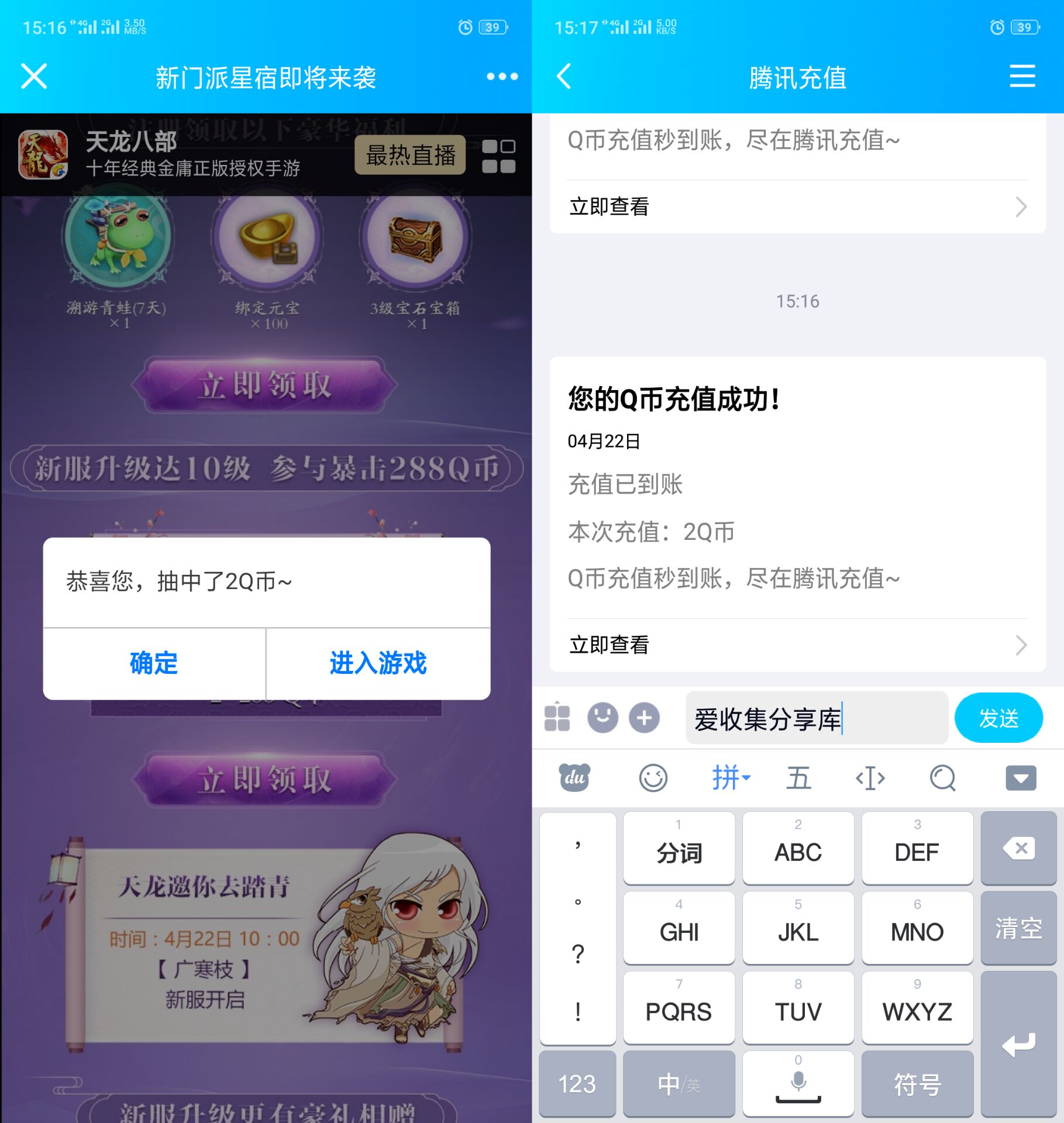 下载天龙八部游戏->登录注册新服进入->玩到十级返回领取->亲测2Q币!