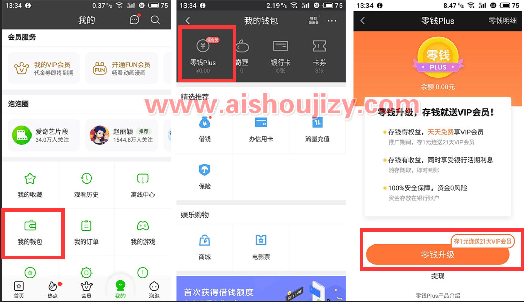 打开爱奇艺APP-我的钱包-零钱plus中参与活动,领取会员即可