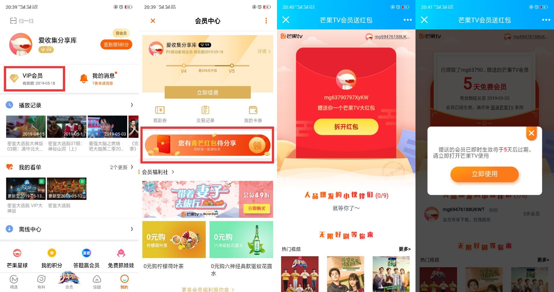 芒果会员V2和爱奇艺会员V5及以上免费领天数